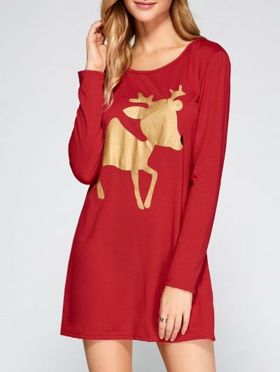 Reindeer Pattern Glitter Christmas Dress222
